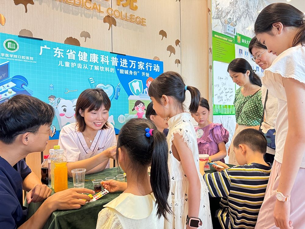 活动现场,“酸碱实验室”化身为健康教育移动课堂,孩子们通过PH试纸变色实验认识酸碱度,通过医护人员的科普,孩子们将酸碱度这一抽象的知识转化为具体认知,使“减少酸性饮料摄入”的健康建议深入“童心”。