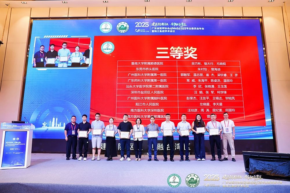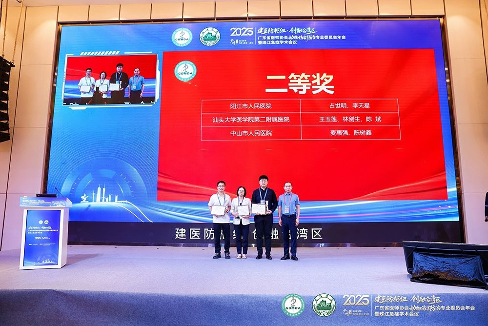 在2025年7月召开的广东省医师协会动物伤害防治专业委员会年会暨珠江急症学术会议上,科室负责人黄天亮博士担任动物伤规范化处置培训班主持人,分享附二院在破伤风防治和犬伤处置中的标准化流程,获得与会专家高度评价。同时,附二院急诊科医护团队在科普及动物致伤优秀救治案例比赛上也收获满满。科室护士长林剑生、副护士长王玉莲、陈斌主治医师荣获动物致伤优秀救治案例比赛二等奖,李欣、张晓漫、王玉莲荣获本次会议科普比赛三等奖。