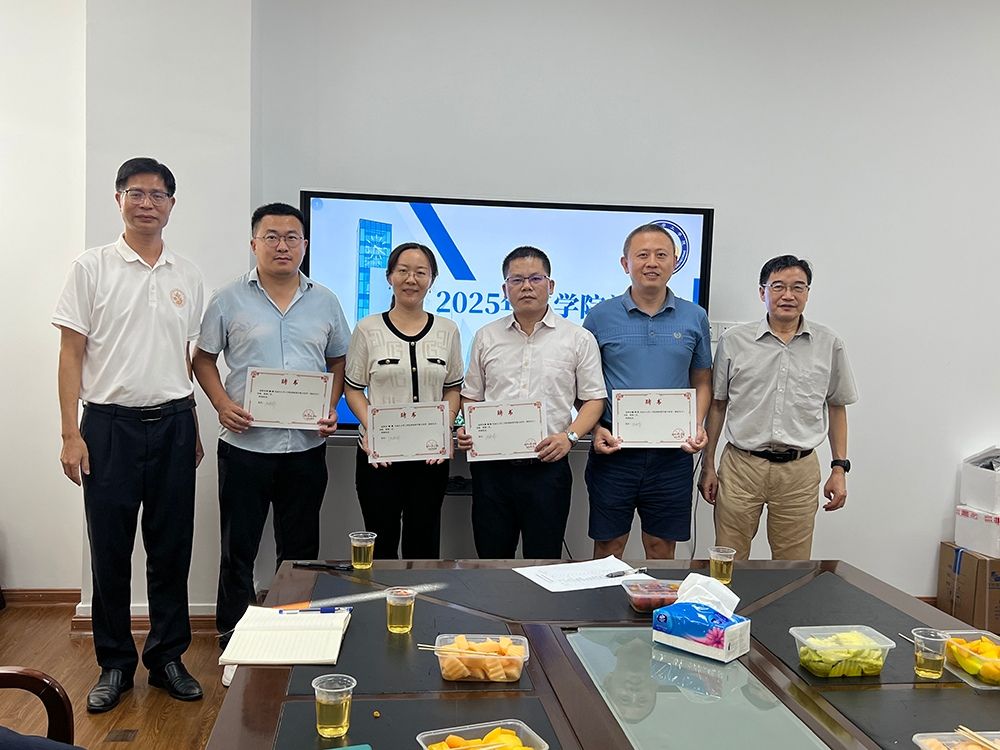 副院长喻莹为吴福培、许国栋、蔡泽民、王延宁等教学经验丰富的教师颁发“汕头大学工学院教师教学能力培养(教研实习)导师”聘书。