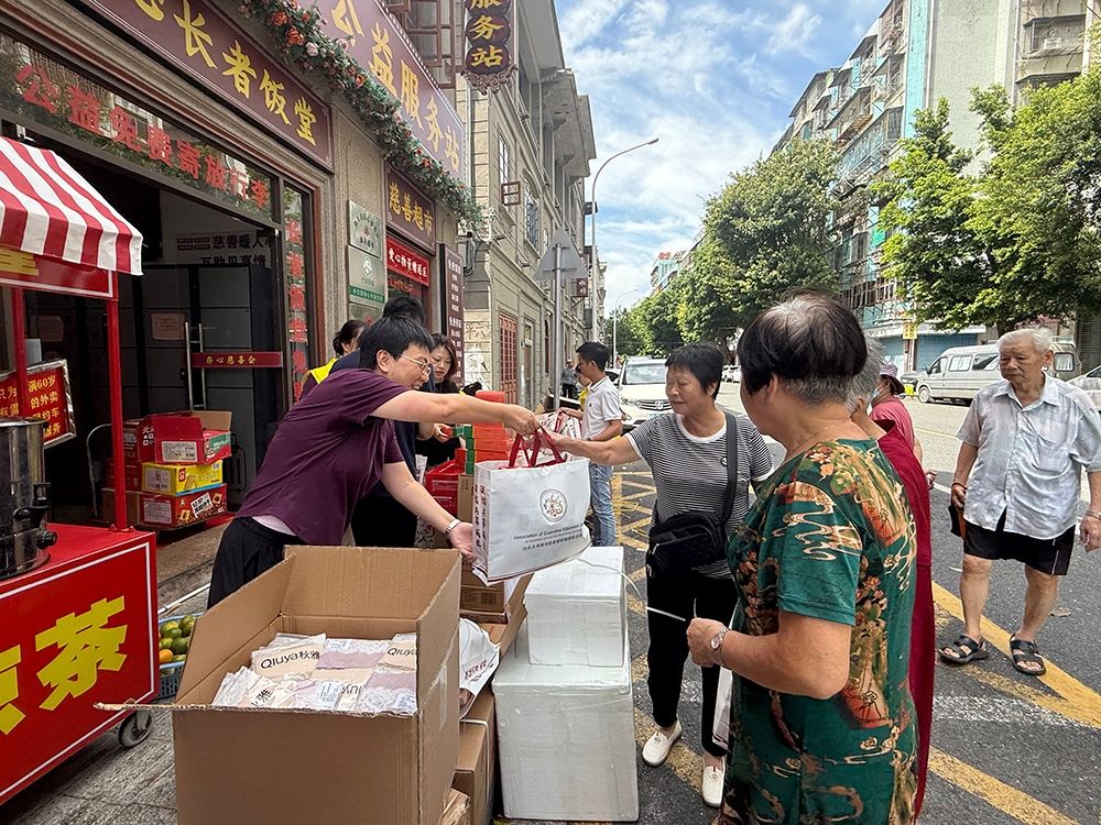 为切实助力长者生活,校友会充分发挥校友力量,募集爱心物资与善款,购置大米、食用油、面粉等老年人日常必需的粮油物资及关节药膏、卫生用品等贴合长者实际需求的物品。活动当天中午,大家将一份份物资有序送到长者们手中,并附上节日的真挚问候。对于行动不便的老人,校友们更是主动上前,悉心打饭送餐,并与他们围坐一堂,闲话家常,共度温馨融洽的午餐时光。