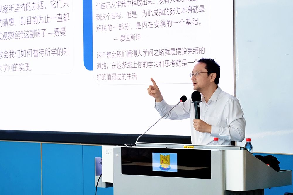 在整场讲座中,王泉展现了他博古通今、学贯中西的深厚学养。当他阐述探索真理的勇气时,不仅引用了伽利略在挑战旧权威时的坚韧,也谈及了孔子“知之为知之,不知为不知”的求真精神;在探讨科学规律与人文关怀的融合时,他既能从牛顿对自然法则的敬畏出发,又能联系到中国传统文化中“天人合一”的哲思。这种宏大的叙事视角,生动地诠释了何为“大学问”——它不分古今中西,而是人类共同追求真善美的旅程,让在场每一位听众都感受到了思想跨越时空的磅礴力量。