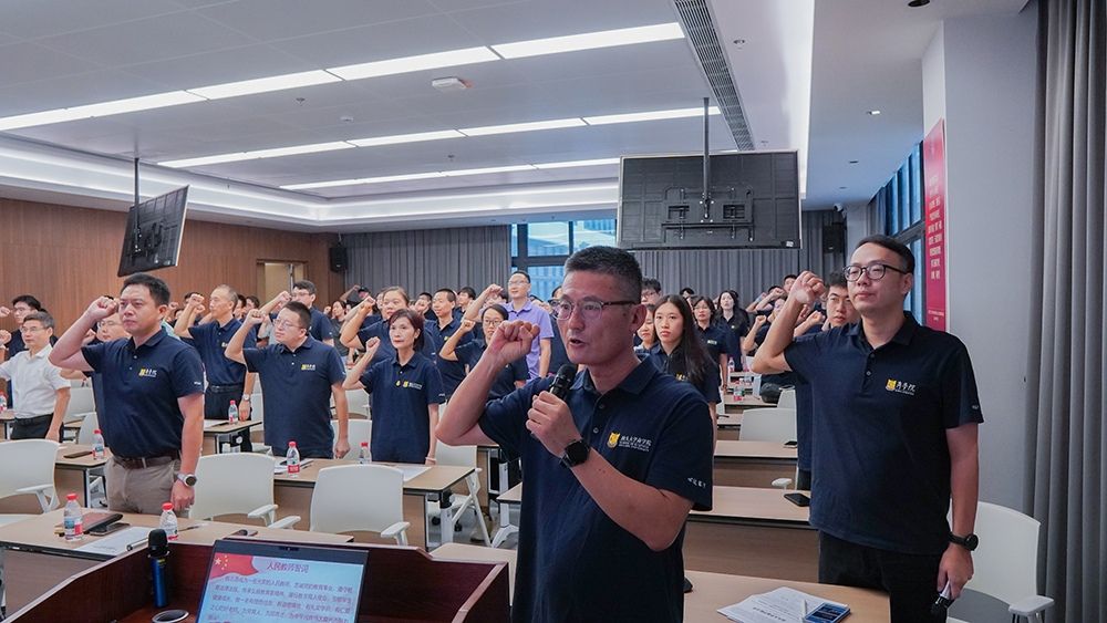 院党委书记邹志波聚焦本科生招生、就业工作,梳理近年来学院在广深地区的招生成效与上一学年的学生就业情况。邹志波指出,上一阶段,学院较好地完成各阶段的招生、就业工作任务,在全院教工的共同努力下,商学院负责区域录取学生人数有了大幅提升,各阶段就业目标稳步达成。他强调,面对日益变化的招生竞争格局和宏观就业环境,全院上下要把握机遇,以国家战略、社会需求和科技发展为牵引,优化专业布局和人才培养模式,提升学生升学、就业、创业等竞争力。作为师德建设主题教育月的重要教育内容,邹志波带领全体教师重温人民教师誓词,引导全体教职工谨记教育使命,严守师德红线,以教育家精神铸魂强师,以坚定的育人初心传道授业。