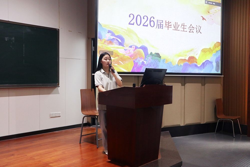 会议第二阶段,林展乔为2026届研究生作了就业指导。她围绕当前就业形势与发展方向进行了系统讲解,结合详实数据深入分析了学院历届毕业生的就业与深造情况。她特别强调了秋季招聘会的关键作用,提醒同学们把握这一黄金时机,积极应对就业压力,提前准备、主动投递简历并早做规划。她还逐一解答了毕业生关心的问题,并告知学院将在两周内集中完成材料审核,以便为毕业生提供及时的就业支持。