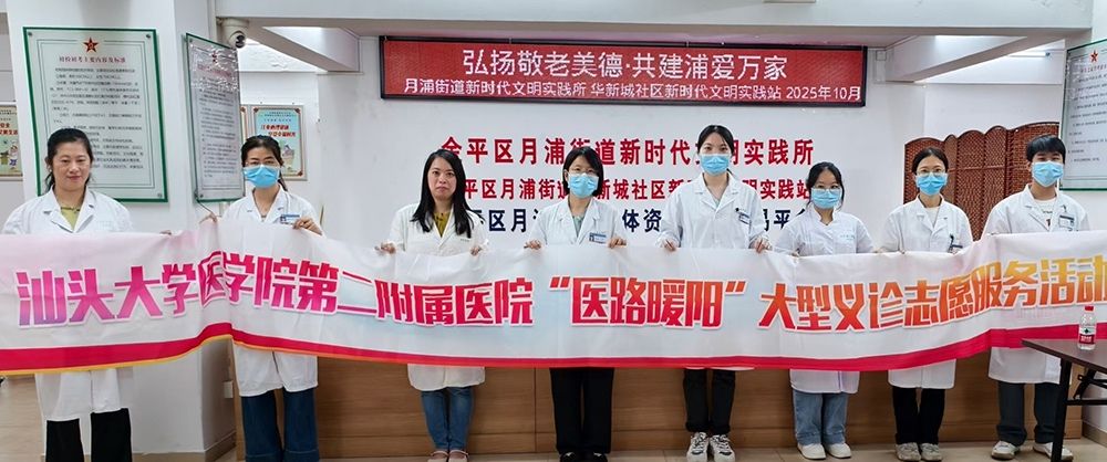 敬老情浓,暖意金秋。在2025年“敬老节”来临之际,为积极践行应对人口老龄化国家战略,弘扬中华民族尊老敬老的传统美德,汕头大学医学院第二附属医院(以下简称附二院)本周联合月浦街道和汕头市龙湖青溪医院连续参与两场社区义诊活动为老年朋友们送去节日的健康与关怀。