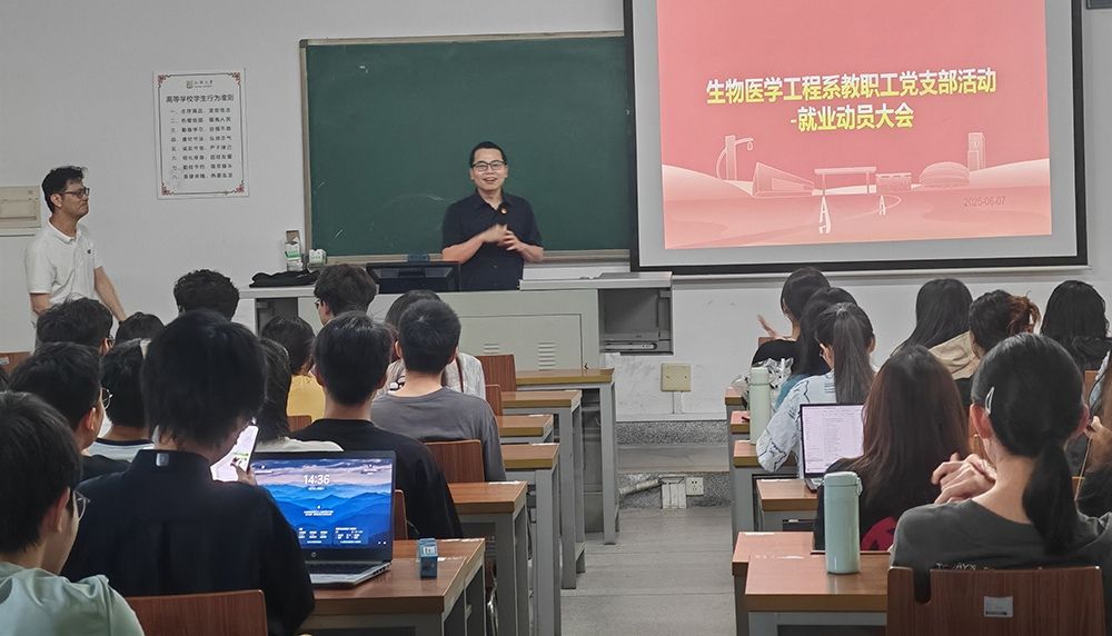 生物医学工程系在E301教室召开毕业生就业动员大会。系主任方强根据自身相关经验、专业和行业的发展情况等给毕业班的同学们分享了就业、升学等方面的内容,提供了相关建议。