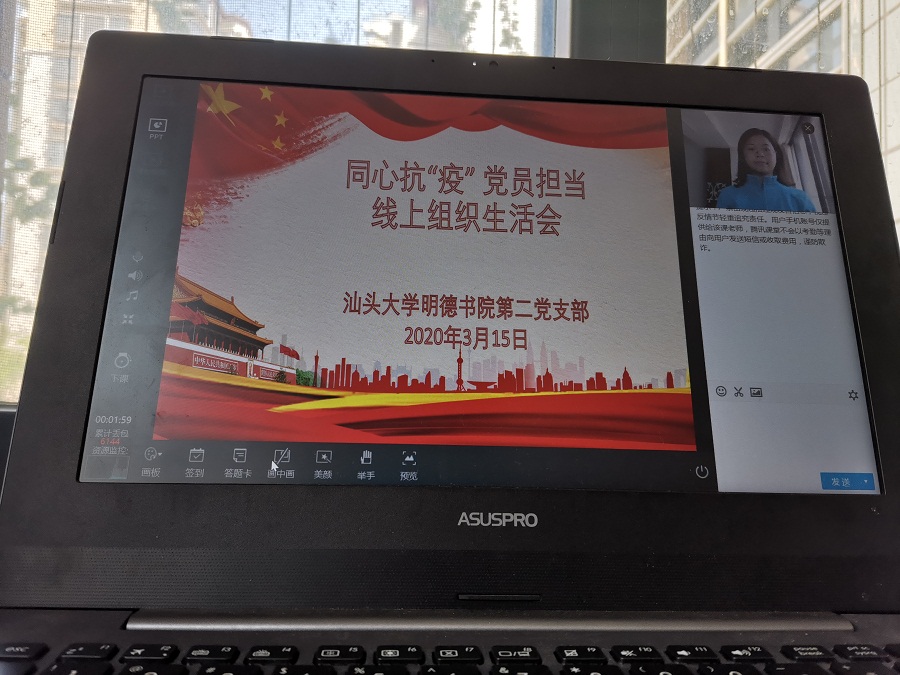疫情防控关键时刻,明德书院党总支充分发挥基层党组织战斗堡垒作用和党员先锋模范作用,确保疫情防控期间广大党员组织生活不缺失,3月15日,第一党支部和第二党支部利用学习强国平台“强国视频会议”、腾讯课堂、微信等网络平台,线上联动,纷纷召开组织生活会,确保“开学不返校,组织生活不间断”。