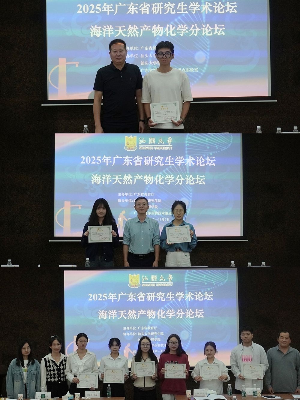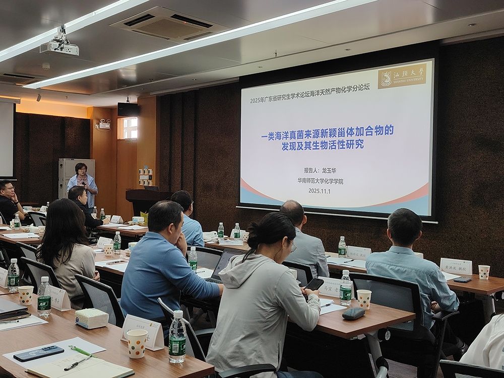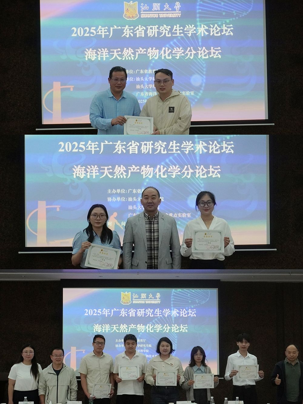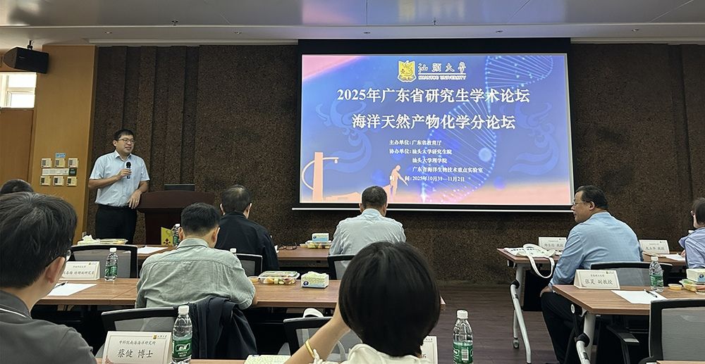 10月31日至11月2日,在广东省研究生教育创新计划项目资助下,由汕头大学理学院、汕头大学研究生院、广东省海洋生物技术重点实验室联合承办的“2025年广东省研究生学术论坛——海洋天然产物化学分论坛”在汕头大学桑浦山校区举办。本次会议得到省内外海洋天然产物化学领域同行的大力支持和热情参与,共有11所高校和科研院所的专家学者、研究生代表共70余人参加,共同探讨海洋天然产物化学的最新进展和未来挑战。