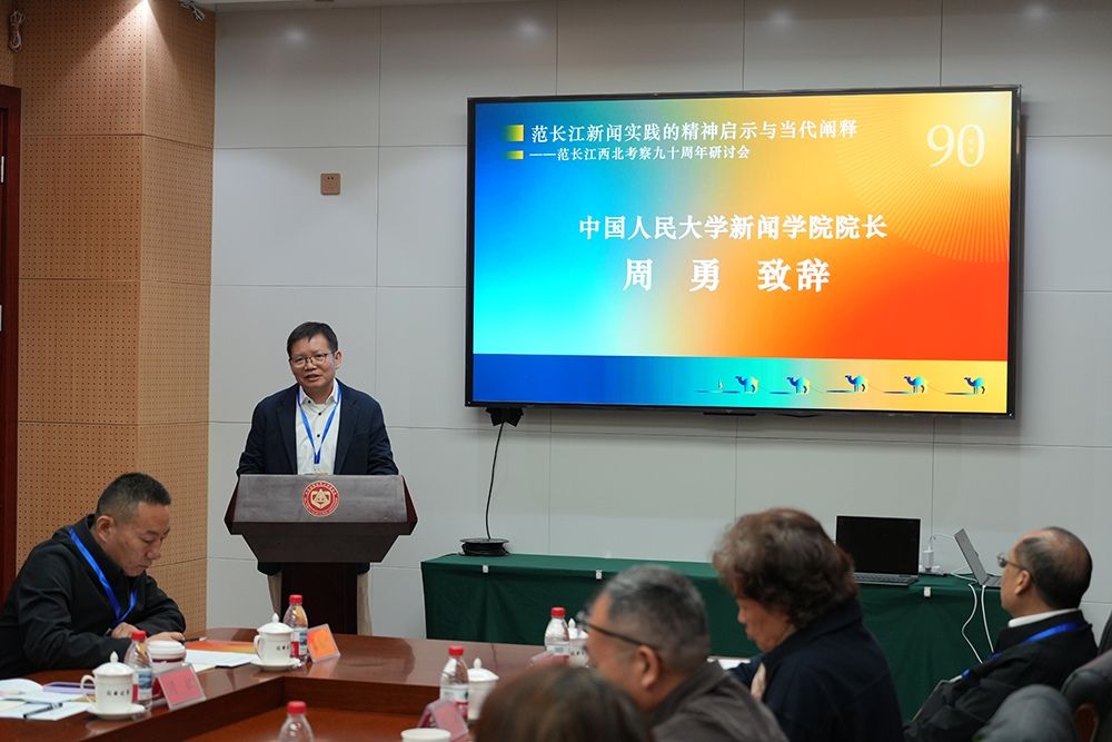 中国人民大学新闻学院院长周勇教授在致辞中指出,在当今时代致敬范长江先生具有非常宝贵的现实意义,其深入现场、探寻真相的精神在“充满鼠标与复制黏贴的今天”尤为重要。人大新闻学院提出将“重走范长江西北采访路”作为长期项目,推动与多校合作,培养具有专业精神与实践能力的新闻人才,致力于在后真相时代重塑舆论生态,传递真实声音。