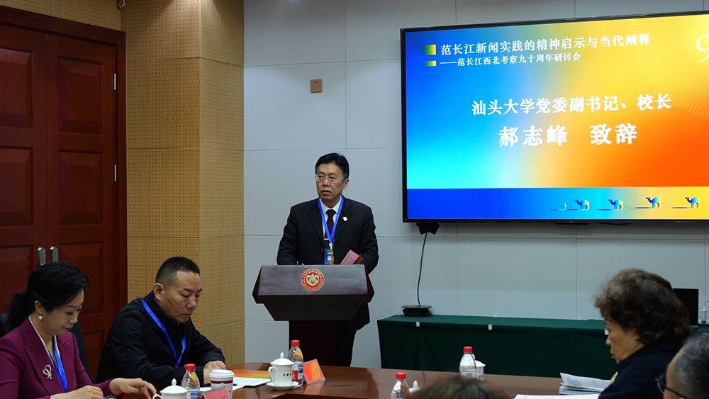 汕头大学党委副书记、校长郝志峰教授在致辞中强调,范长江新闻实践所蕴含的精神,不仅是“四力”的精神源头,更给汕头大学的新闻教育带来了关键启示。依托“范长江班”,汕大构建了“精神传承+专业培养”的融合课程体系。自2007年起,汕大开展了十一次“重访中国西北角”活动,“这些活动的足迹基本覆盖范长江当年考察的核心路线”。他还代表汕头大学倡议:搭建全国性范长江研究科研平台、成立“范长江红色研学联盟”、将“重走长江路”列为高校新闻学实践教学推荐内容。