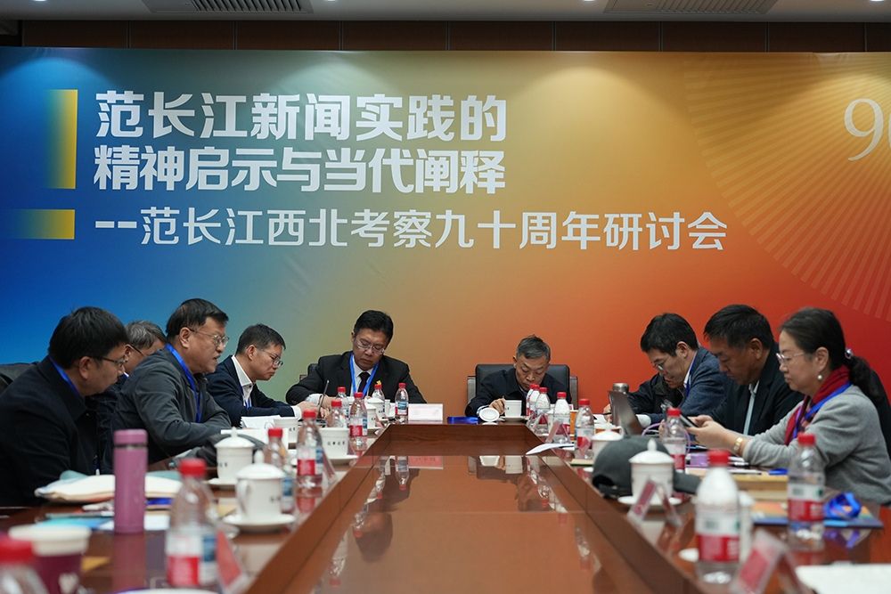 九位专家学者作主题发言,围绕范长江新闻实践的史实考订、精神内涵挖掘及价值重构和新闻学教学改革等议题做精彩分享。