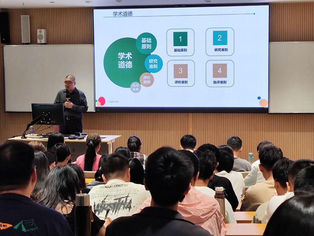 为进一步强化研究生学术诚信意识、规范学术行为,营造风清气正的学术生态,数学与计算机学院于11月3日在东海岸校区E座教学楼420教室举办研究生学术道德与学术规范专题讲座,邀请汕头大学公共卫生学院教师刘苏洋博士作为主讲嘉宾,学院100余名研究生参加讲座。辅导员田亚梅主持讲座。