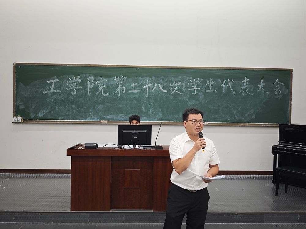 11月9日下午,工学院第二十八次学生代表大会于桑浦山校区讲堂一召开。工学院团委负责人张凯梁、辅导员王燕妮出席大会,与全体学生代表共同见证了本次会议的进行。