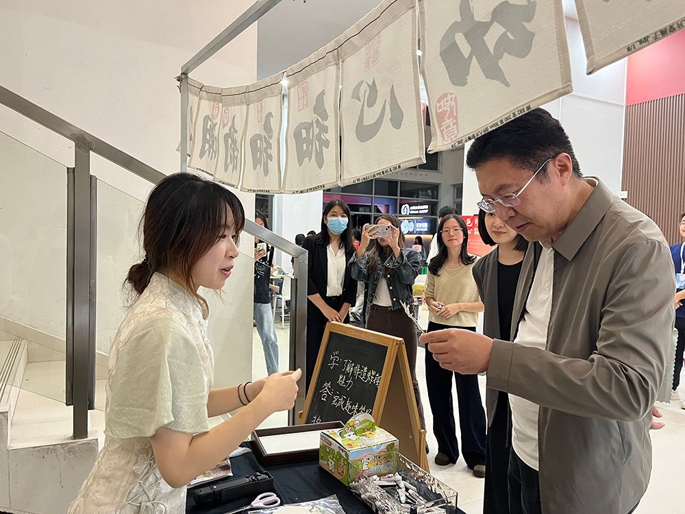 校党委副书记、校长郝志峰也来到活动现场,与同学们亲切交流。他强调,非遗是中华优秀传统文化的重要组成部分,书院要持续推动非遗与教育教学、校园文化的深度融合,为师生搭建更多接触、传承非遗的平台,助力青年学子成为传统文化的守护者与创新者。