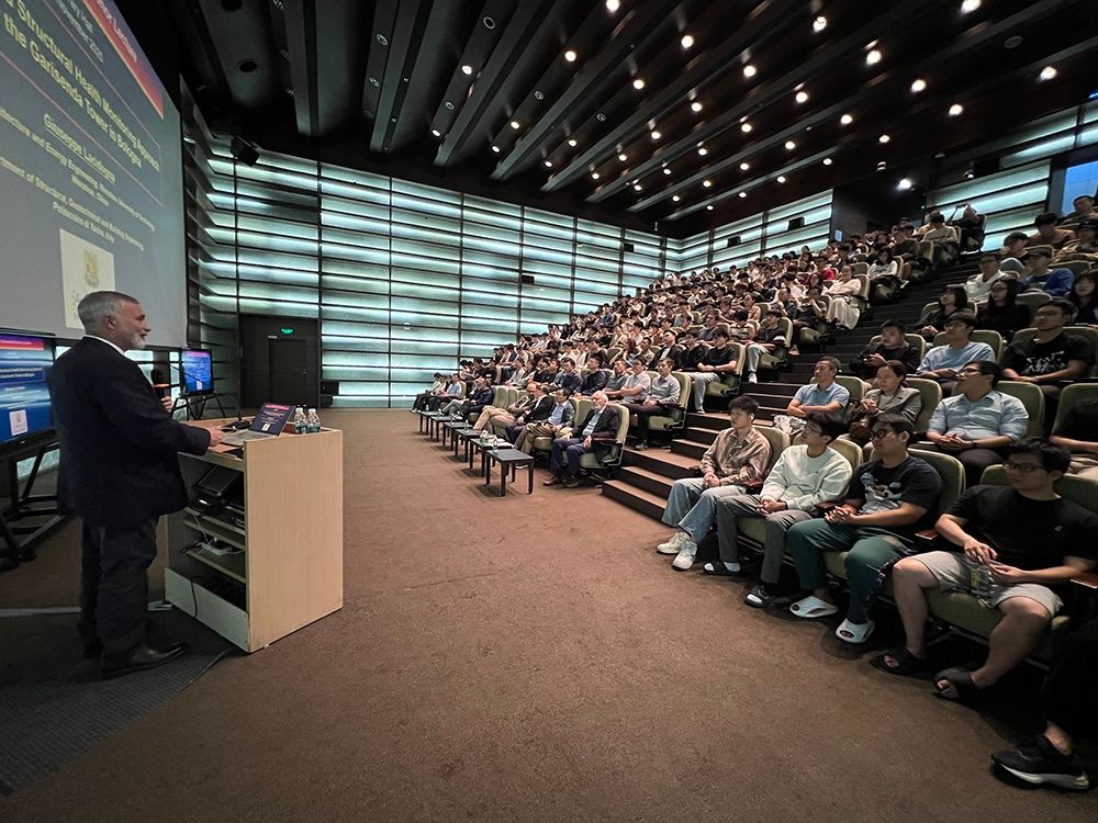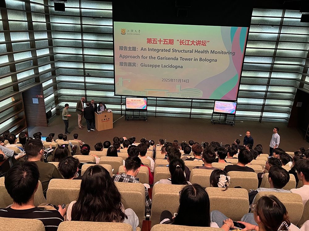 11月14日下午,由汕头大学党委宣传统战部和工学院联合举办的第五十五期“长江大讲坛”在图书馆报告厅举行。意大利都灵理工大学教授、欧洲科学院院士Giuseppe Lacidogna教授受邀给汕大师生作主题为“An Integrated Structural Health Monitoring Approach for the Garisenda Tower in Bologna”的学术报告。工学院院长沈水龙主持讲座。