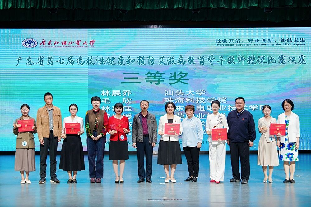 11月13日,由广东省教育厅主办、广东外语外贸大学承办,广东省疾病预防控制中心、广东省性病艾滋病防治协会等单位协办的“广东省第七届高校性健康和预防艾滋病教育骨干教师授课比赛决赛”圆满落幕。汕头大学工学院林展乔老师凭借扎实的教学功底与出色的现场表现,在大赛中获三等奖;与此同时,学校荣获“优秀组织奖”。