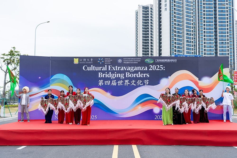 动态表演环节同样亮点迭出,为观众带来了一场视听盛宴。时装秀上,各国代表身着传统服饰依次亮相,摩洛哥的刺绣长袍、土库曼斯坦的丝绸服饰等特色服饰将各国文化特色展现得淋漓尽致;世界舞蹈环节中,土库曼斯坦学生以热情奔放的舞姿点燃全场,来自泰国的学生则用优雅温婉的身段尽显韵味,一刚一柔的鲜明对比极具张力,台下观众掌声与喝彩声不绝于耳;歌唱表演中,俄罗斯、缅甸、土库曼斯坦等国家的同学先后登台,不同语言的歌曲或激昂或悠扬,跨越了语言的隔阂,传递出共通的情感。其中,土库曼斯坦的梅林和艾妮莎带来的《MANIFEST “KTS”》舞蹈表演尤为出彩,明快的节奏与默契的配合,现场掌声与欢呼声此起彼伏。