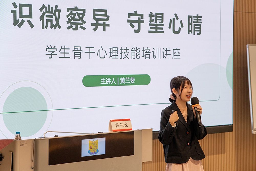 11月12日19:00-20:30,为提升学生骨干们的心理危机识别与应对能力,学院邀请学生处心理健康教育与咨询中心黄兰斐老师主讲专题四——学生骨干心理技能培训。本次培训黄兰斐明确了骨干们“心理哨兵”使命担当,并围绕心理知识传递及危机应对方法展开讲解,让学生骨干们掌握了心理健康知识与危机应对技能,为校园心理健康防护体系注入青春能量。