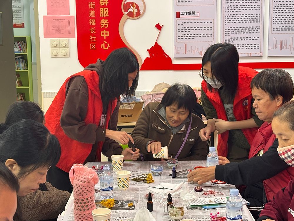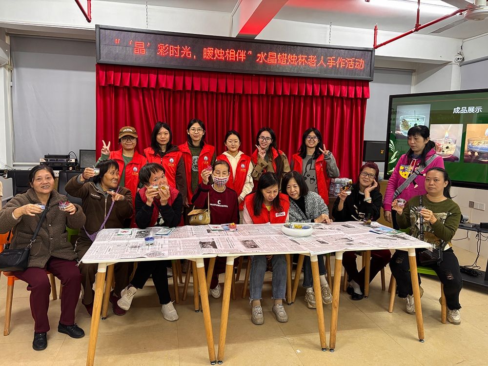 为弘扬尊老敬老的传统美德,丰富社区老年人的精神文化生活,汕头大学工学院“智享科技”突击队于11月19日携手大华街道福长社区党群服务中心,举办“‘晶’彩时光,暖烛相伴”水晶蜡烛杯老年手作活动。活动以“情感传递与创意手作”为主题,将晶莹剔透的海洋元素、七彩斑斓的花草元素与温暖治愈的蜡烛制作相结合,让老年人在动手创作中感受艺术与情感的交融,共度一段充满温馨与成就感的时光。