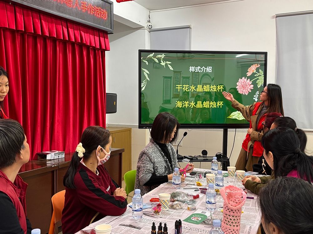 随着一盏盏晶莹温暖的水晶蜡烛杯陆续完成,活动进入了展示交流环节。老人们纷纷举起自己的作品,互相欣赏、交流灵感。有的杯子晶莹剔透如冰雪世界,有的色彩斑斓似晚霞满天。大家在欢声笑语中分享制作心得,拉近了彼此的距离,也增强了社区的凝聚力。