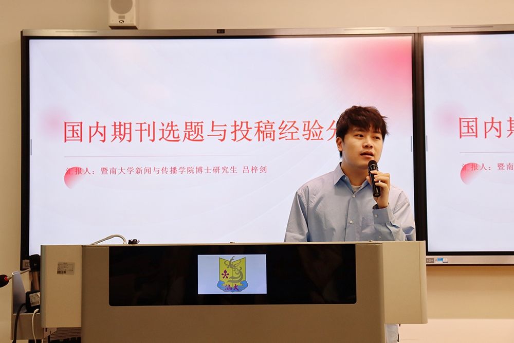 11月12日上午,汕头大学2025年研究生学术活动月系列活动再启——长江新闻与传播学院特邀暨南大学新闻与传播学院2023级博士吕梓剑做客“学术前沿讲座”。围绕“学术小白如何在内卷环境中找准科研方向”这一核心话题,吕梓剑为在场研究生指点迷津,分享知识谱系构建与学术标签塑造的实用方法。本次讲座由学院副院长毛良斌教授主持。
