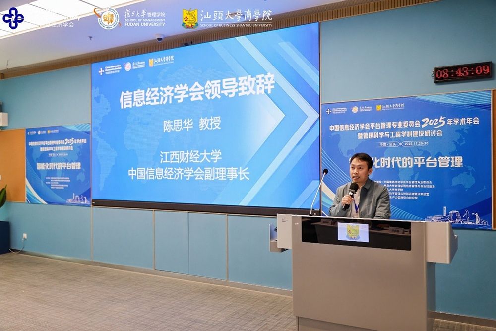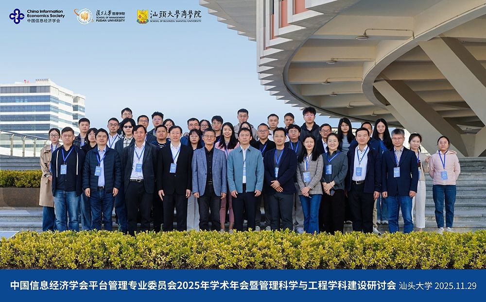 11月29日至30日,中国信息经济学会平台管理专业委员会2025年学术年会暨管理科学与工程学科建设研讨会在汕头大学东海岸校区举办。本次会议由中国信息经济学会平台管理专业委员会与复旦大学管理学院信息管理与商业智能系主办,汕头大学商学院、粤东数字管理与智慧治理重点实验室、新质生产力国际联合研究院承办。会议围绕“智能化时代的平台管理”这一主题开展系列专题报告、论文演讲及专家辅导、企业考察等活动,来自国内多所高校的专家学者共聚一堂,进行学术研讨交流。