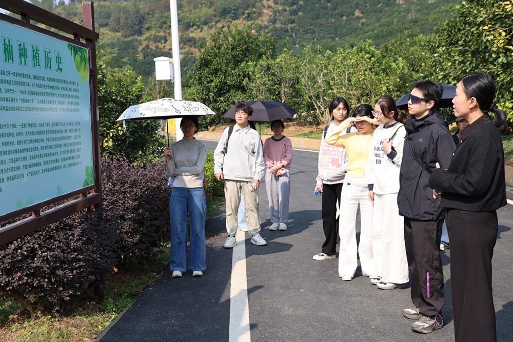 走进梅县区雁洋镇南福金柚种植基地——这座集生产示范与生态旅游于一体的省级农业现代化示范基地,师生们通过实地探访和专家讲解,系统了解了金柚百年种植历史与产业迭代历程。从“科技赋能种植”到“农文旅融合发展”的创新路径,从枝头硕果到产业链条的完整构建,大家直观感受到特色产业在乡村振兴中的支柱作用,深刻领会到乡村振兴战略的实践伟力。