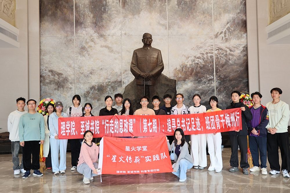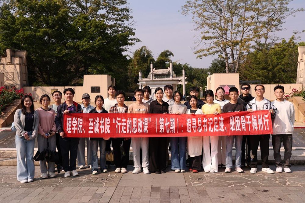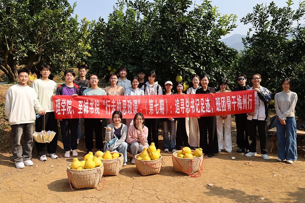 为深入学习贯彻习近平总书记在广东考察时的重要讲话精神,推动思政教育与实践体验深度融合,12月3日,理学院、至诚书院团委副书记丁源、辅导员陈泽拱等带领班团骨干赴梅州开展“行走的思政课”(第七期)活动,在叶剑英纪念园感悟红色初心,于南福金柚种植基地见证乡村振兴实践成效。