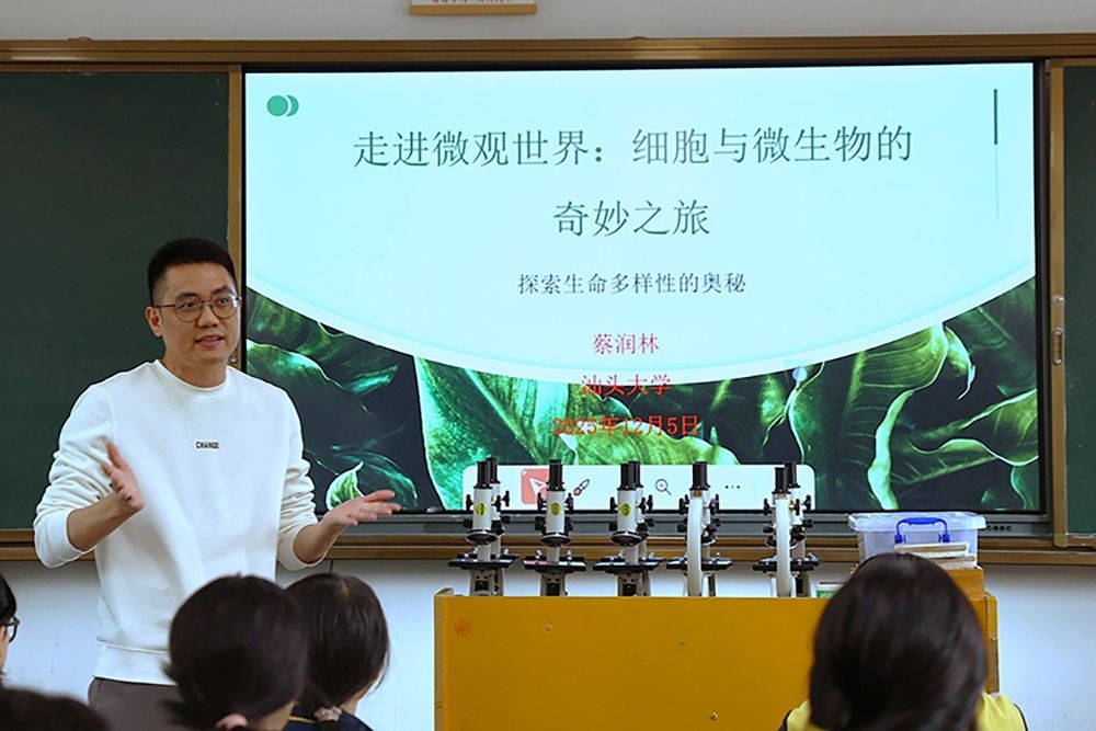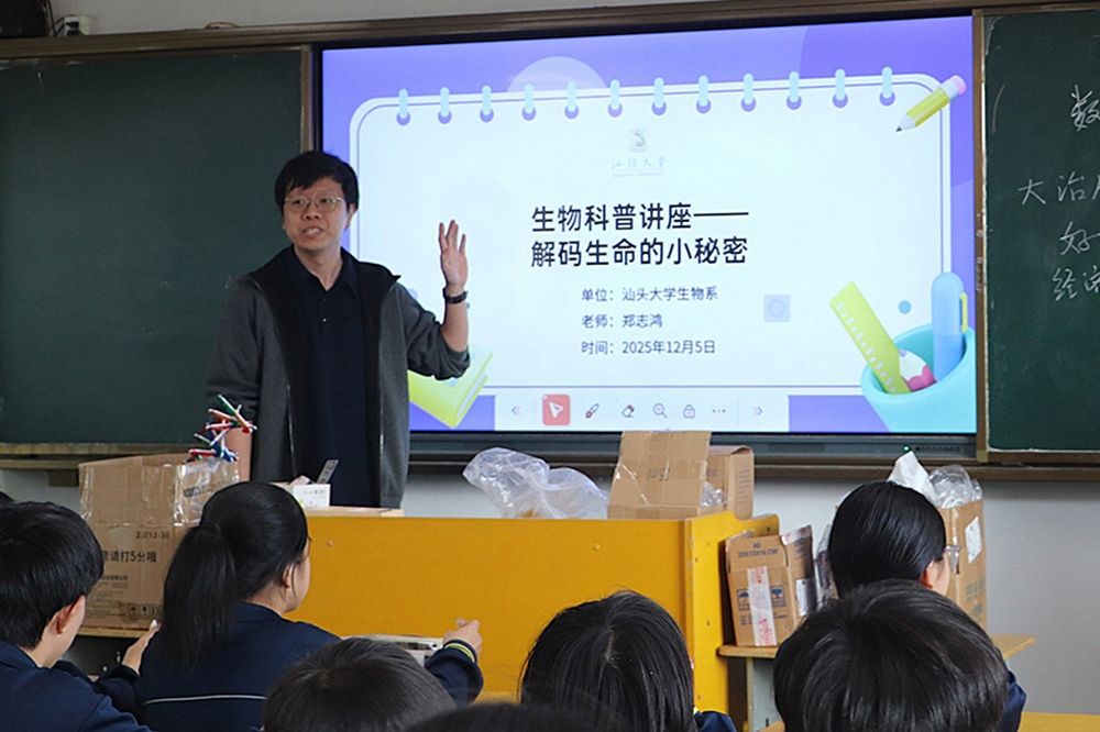 为进一步发挥高校专业优势,促进学科素养与科普事业的深度融合,增强高校服务地方经济社会发展的责任和能力,同时提升中学生的基础科学素养与开拓创新能力,汕头大学理学院、至诚书院联合揭西县纪达中学,共同开展了“蒲公英计划”科普专项行动(第63期),本次活动设置“生命学堂”与“格物学堂”两大主题板块,通过互动讲解、案例展示、视频辅助与动手实践相结合的形式,引导学生走进科学世界,体验探索乐趣。