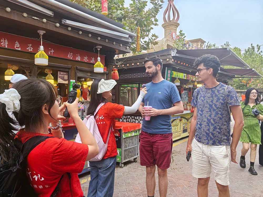 面对国际舆论中的西北“污名化”杂音,团队创新打造“背包教学+流动编辑部”模式,联动高校联盟设计研学路线,让海内外青年实地探访扬黄灌溉、荒漠蝶变等鲜活场景,在行走中读懂中国之治。团队产出的《水往高处流》等融媒体作品,单条播放量破千万,用事实有力回击“贫困”“冲突”等刻板印象。
