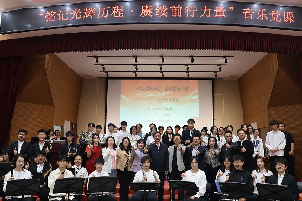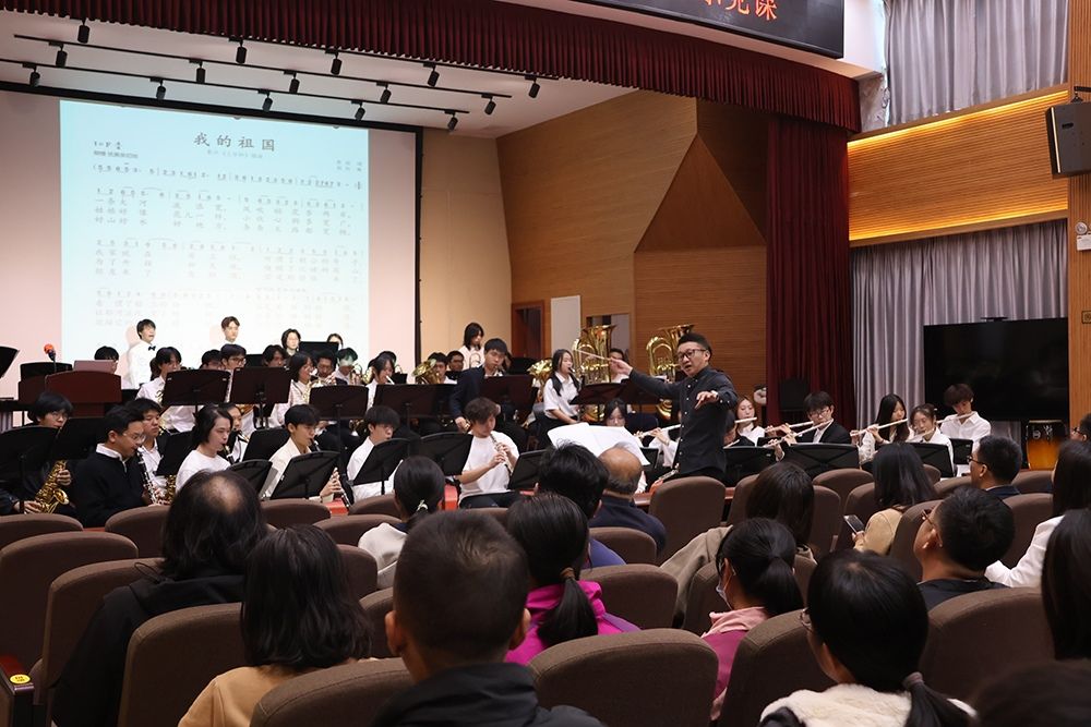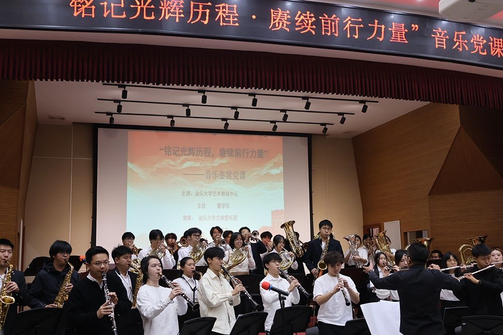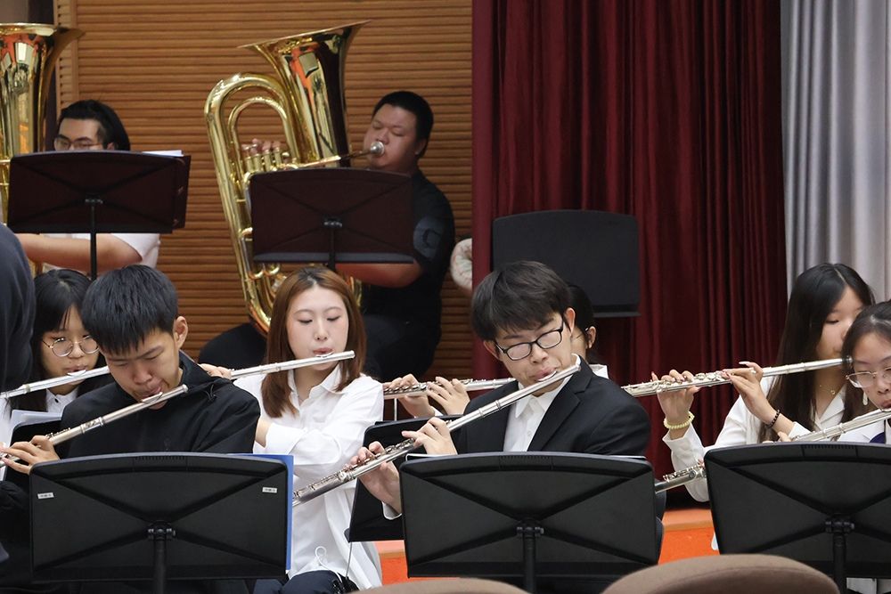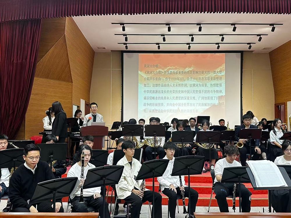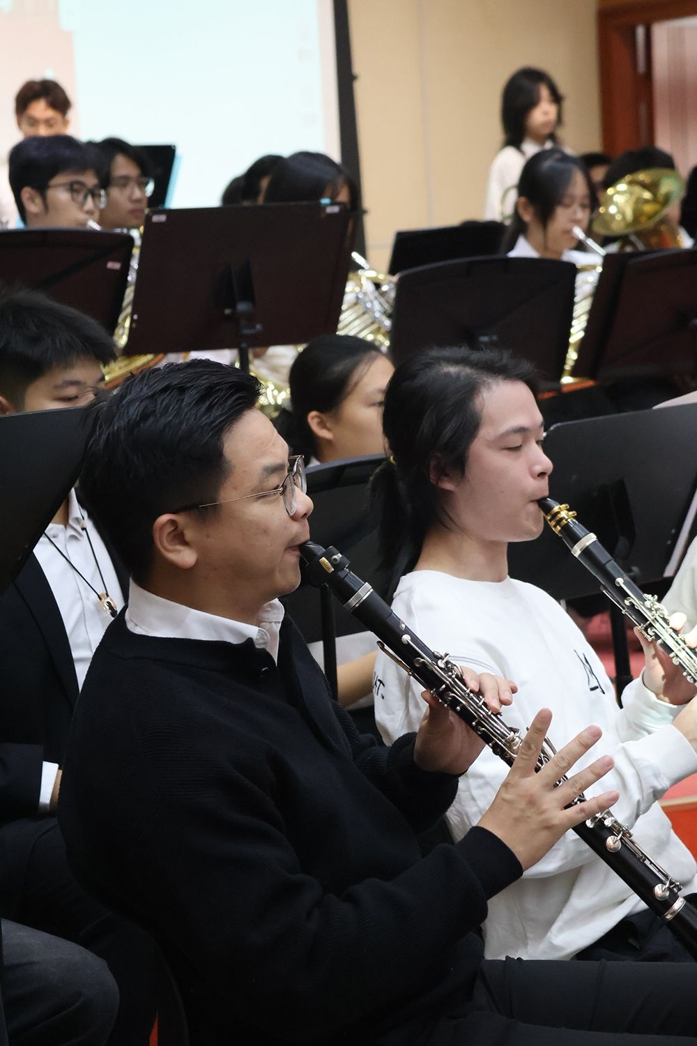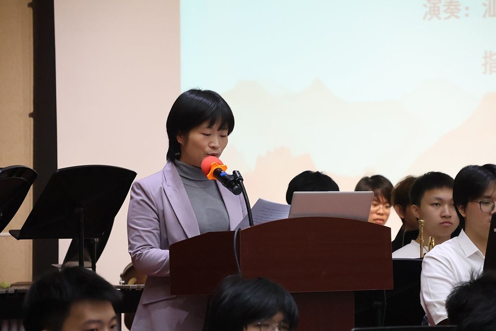 活动伊始,南澳县政协相关领导在欢迎辞对各方支持表示感谢,并强调本次音乐党课以红色经典歌曲为载体,通过交响管乐的现场演绎,加强党史学习教育。随后,罗英光同志讲话,高度肯定了汕头大学艺术教育中心在课程策划、节目排练等方面的辛勤付出,并指出音乐党课是新时代加强党性教育、传承红色基因的有效路径。整场党课由汕头大学艺术教育中心董学民教授主讲,林伟杰老师携汕头大学交响管乐团倾情演奏,特邀南澳县云澳中学周丽新老师参与演出,共同呈现了一场高水准、有温度的艺术党课。