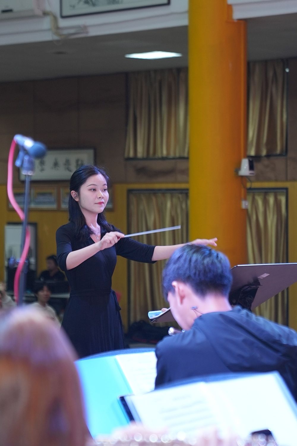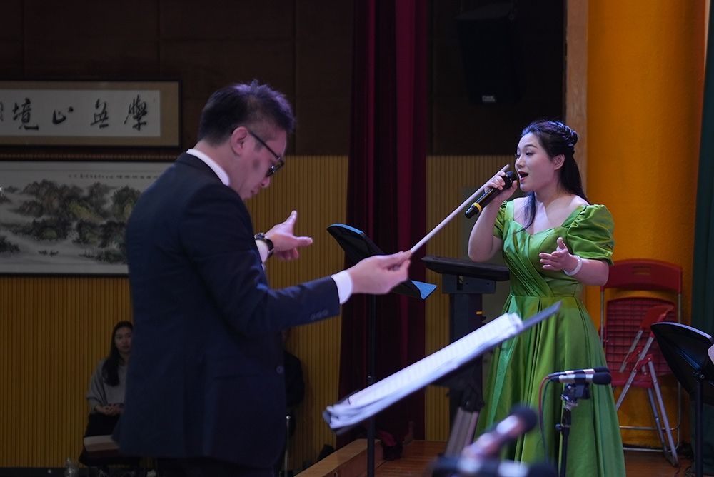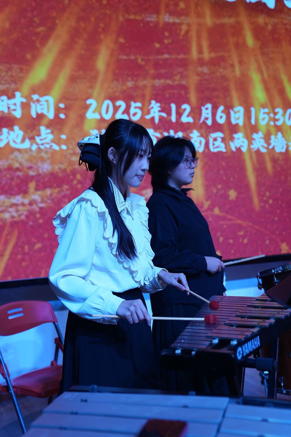 音乐会在激昂雄壮的《人民解放军进行曲》中拉开帷幕,随后《在太行山上》《黄河大合唱》选段、《延安颂》《钢铁洪流进行曲》《没有共产党就没有新中国》《唱支山歌给党听》《在希望的田野上》《春天的故事》等经典曲目轮番上演,从革命岁月的激昂呐喊到新时代的奋进欢歌,层层递进传递爱国情怀。演出中,管乐团同学们先后带来《黄河大合唱》选段与《延安颂》的合奏,以精湛技艺诠释经典魅力,用深情演绎传递对革命圣地的崇敬;墙新学校赵丹娜老师登台指挥《钢铁洪流进行曲》,引领乐团奏响铿锵乐章,赢得全场掌声;特邀演唱者周冰纯老师倾情参与《春天的故事》演唱,用真挚歌声展现时代活力。音乐会在压轴曲目《我的祖国》的全场合唱中抵达情感顶点。随后,附加返场曲目《红星歌》以明快昂扬的节奏奏响,为这场爱国主义艺术盛宴画上圆满句号。
