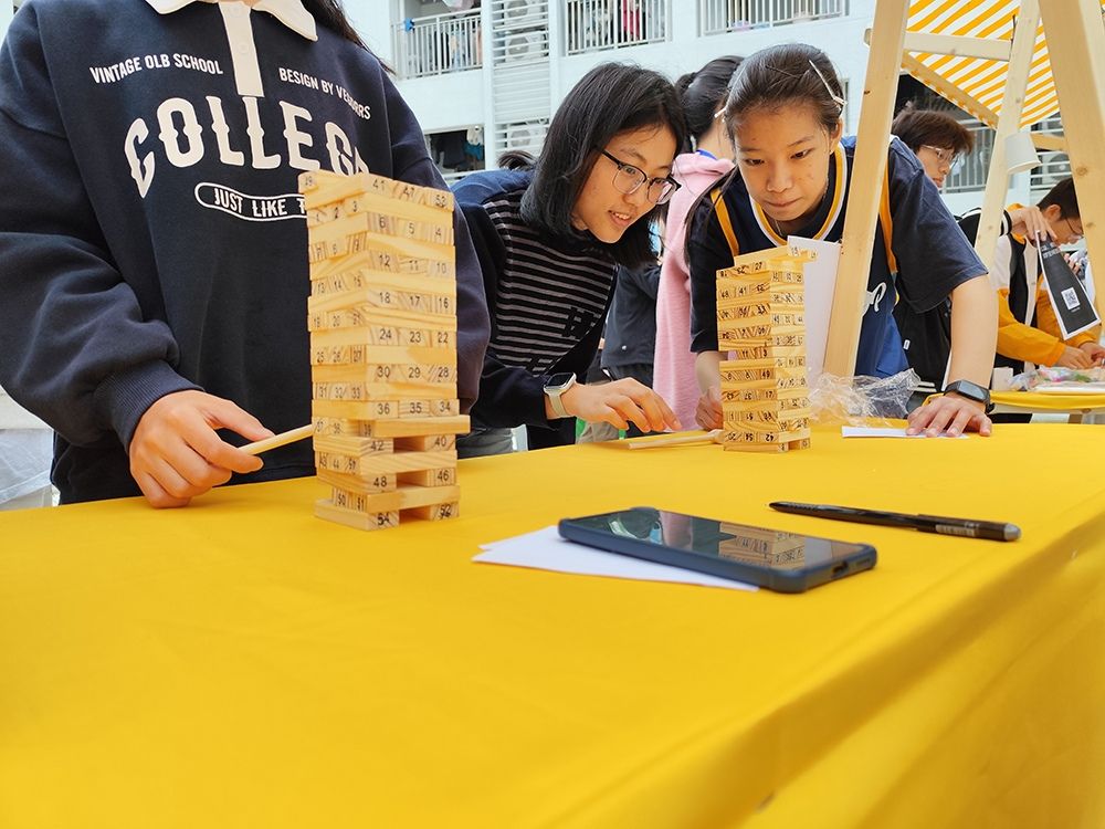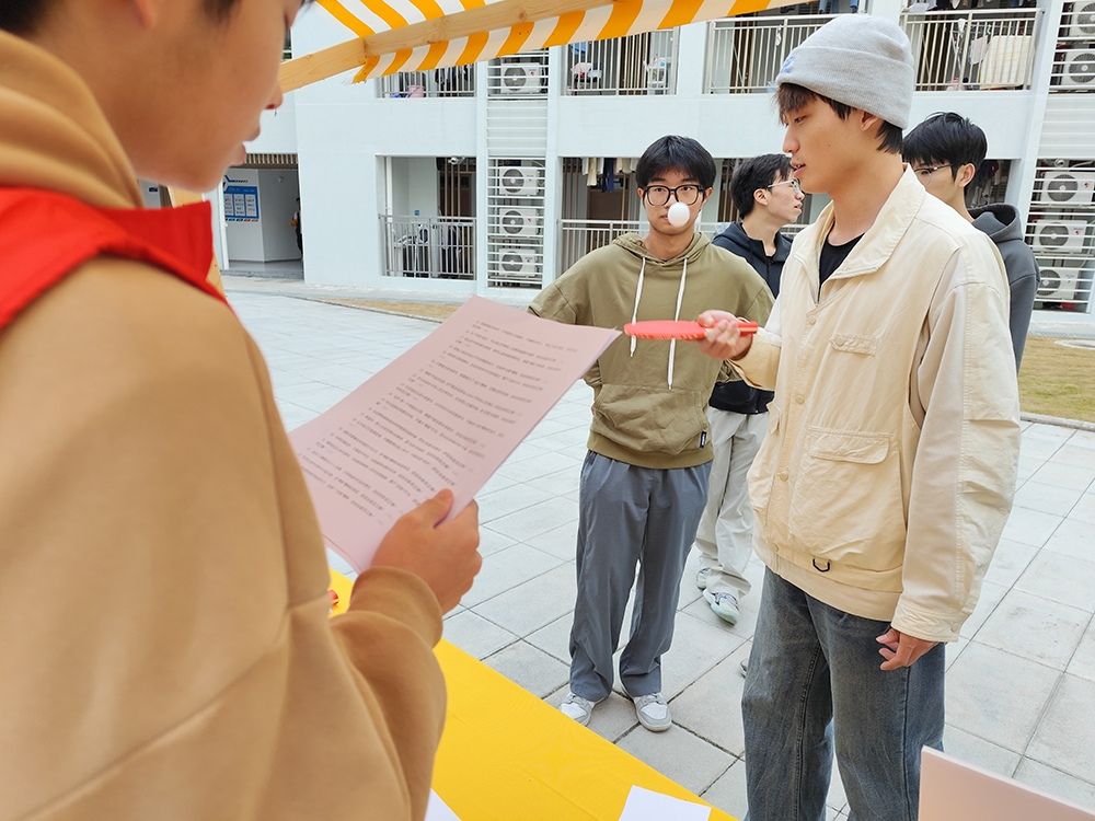 本次活动以趣味赋能成长、互动凝聚情谊为主线,设计了多项寓教于乐的趣味小游戏。“气贯长虹,同心共运”与“笔绘心象,眼猜意长”两大关卡聚焦团队协作,玩家自发组队、默契配合,或背夹气球稳步前行,在同步节奏中锤炼协作意识;或通过手绘传递信息、协同猜词,在思维碰撞中加深伙伴情谊。“球韵不息,思辨风发”“‘械’后未来,极限速递”及“协力捕风,共启光明”,三个关卡则侧重展现个人综合能力,参与者或一边颠乒乓球,一边回答问题,手脑并用考验协调能力;或巧用瓶盖、纸盒等简易材料拼接创意小车,比拼滑行距离;或动手组装风车组件,借助风力实现发电照明,激发手工实践能力。而“叠木成林,师生同心”关卡则最具工学院特色,将力学知识与趣味决策相结合,师生共同抽取积木并叠高塔,在游戏中直观感受工科知识的实用价值。