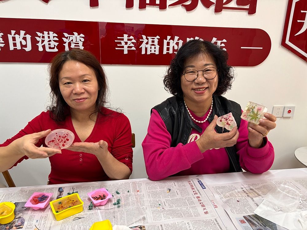 展示交流环节,活动现场成了一片芬芳四溢的“创意皂艺展”。老人们纷纷捧起自己的作品,向身边的邻里分享创作灵感。一块块晶莹剔透的手工皂中,不仅定格着花草的鲜活形态,更承载着老人们的生活情怀与创意巧思。大家在互相欣赏、交流借鉴中拉近了邻里距离,收获了满满的成就感与幸福感。