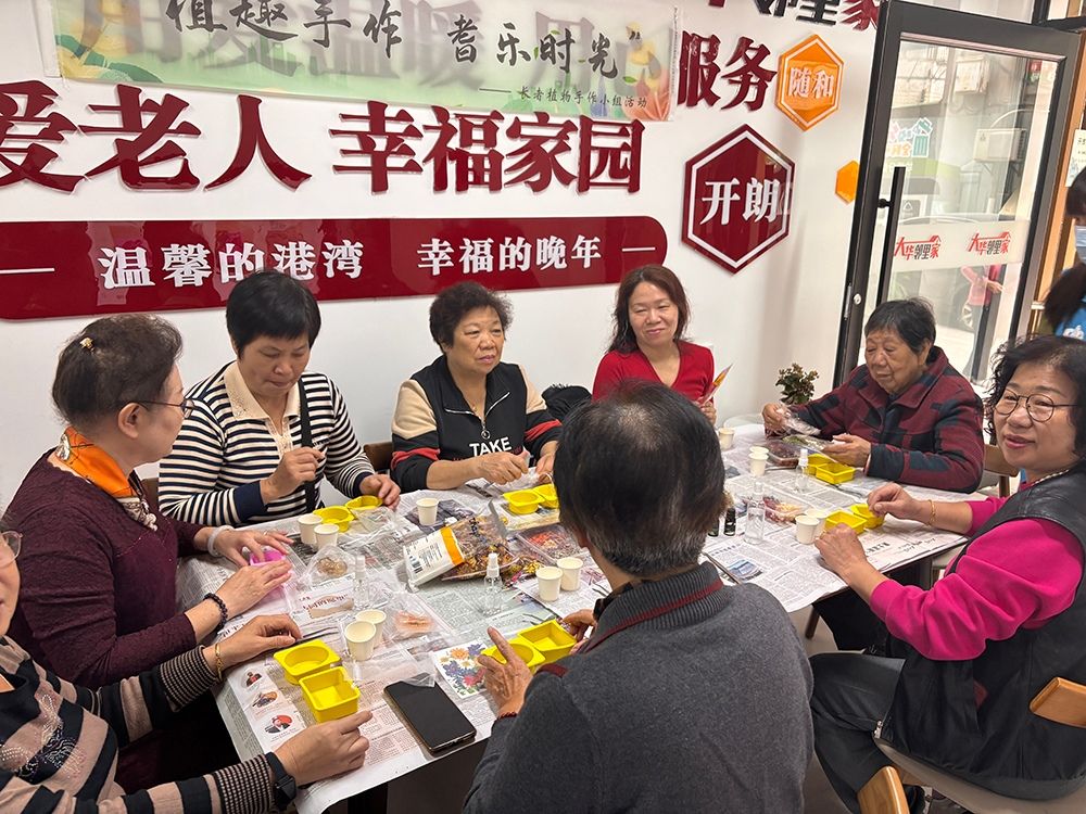 活动临近尾声,志愿者将所有成品集中摆放展示,一块块造型别致、花香四溢的压花手工皂整齐排列,既有古法工艺的温润质感,又不失现代美学的创意灵动,引得在场老人纷纷驻足赞叹。随后,全体参与者与志愿者手持自制的压花手工皂合影留念,快门按下的瞬间,一张张笑脸与一块块创意皂品相映成趣,定格了这段“皂染芬芳”的耆乐时光。