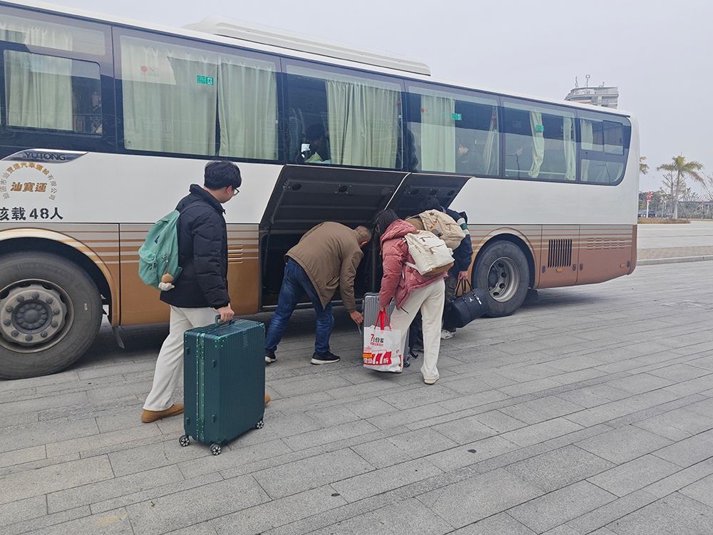 近日,一辆辆“暖心专线”大巴从汕头大学东海岸校区驶出,将学子们安全、便捷地送达高铁汕头站。这是东海岸校区管委会为切实解决学生寒假离校交通难题,积极协调汕头市汽车客运有限公司支持开通的“点对点”直达专线服务,为东海岸校区学生寒假返乡之路保驾护航。