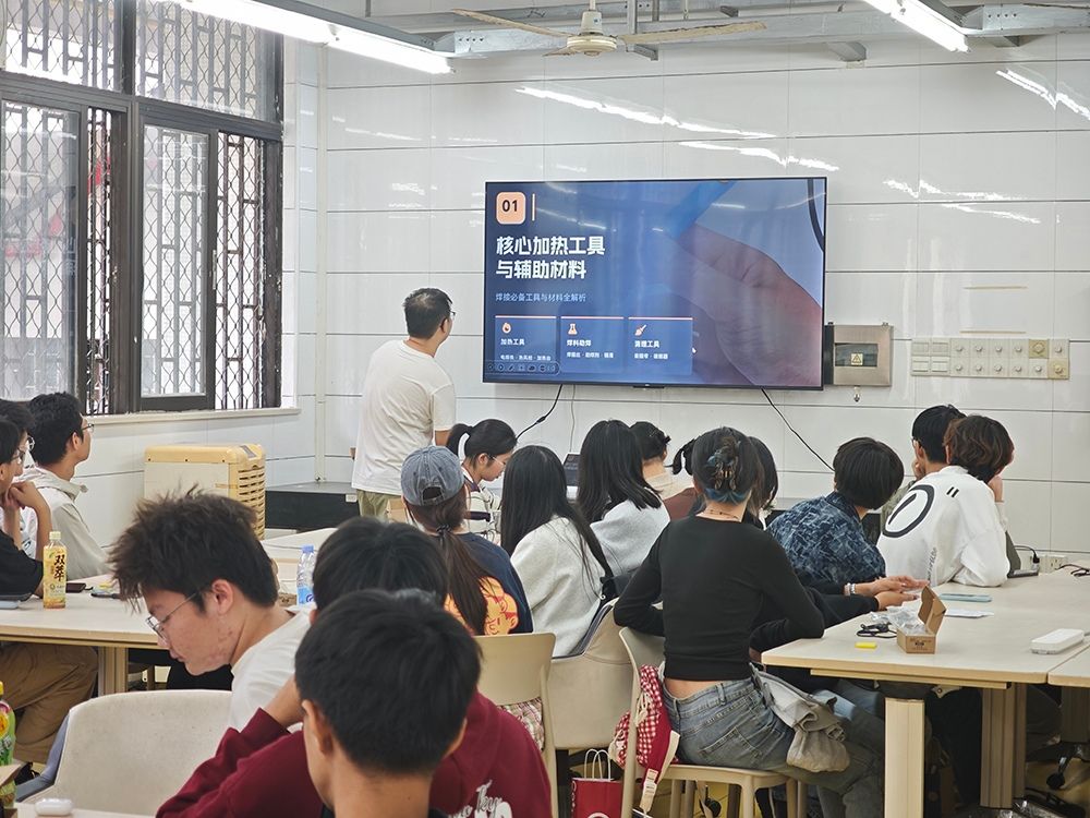 本期工作坊由工学院“科启青锋”实践队携手科技创造协会共同承办,通过“由浅入深、逐级递进”的课程设计,引导学生从基础焊接操作到综合实践应用,实现技能进阶与素养提升,为学生专业学习与科创实践奠定坚实基础。