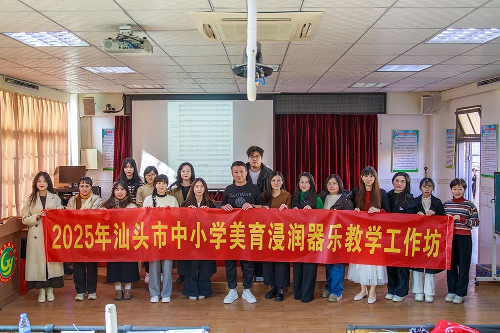 乐声悠扬,余韵悠长。2025年,由汕头市教育局与汕头大学艺术教育中心联合主办的“中小学美育浸润乐器教学工作坊”系列活动,在陈店沟湖学校的最后一曲合奏中落下帷幕。这场以管乐为纽带的美育之旅,不仅为潮南区的师生们带来了专业的艺术指导,更让“以乐育人、以美化人”的理念深深扎根校园。