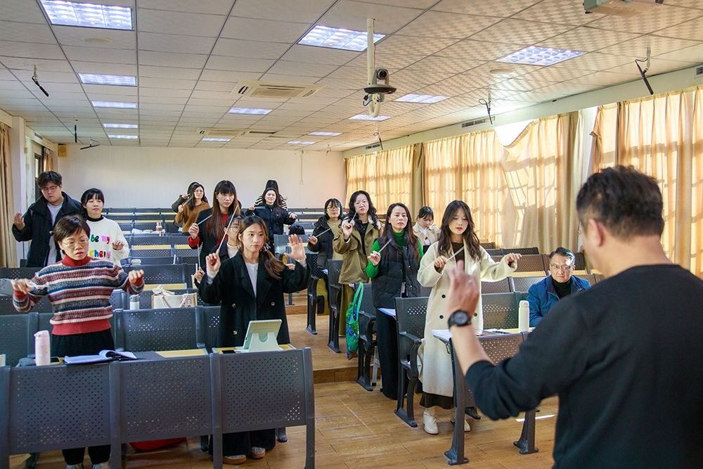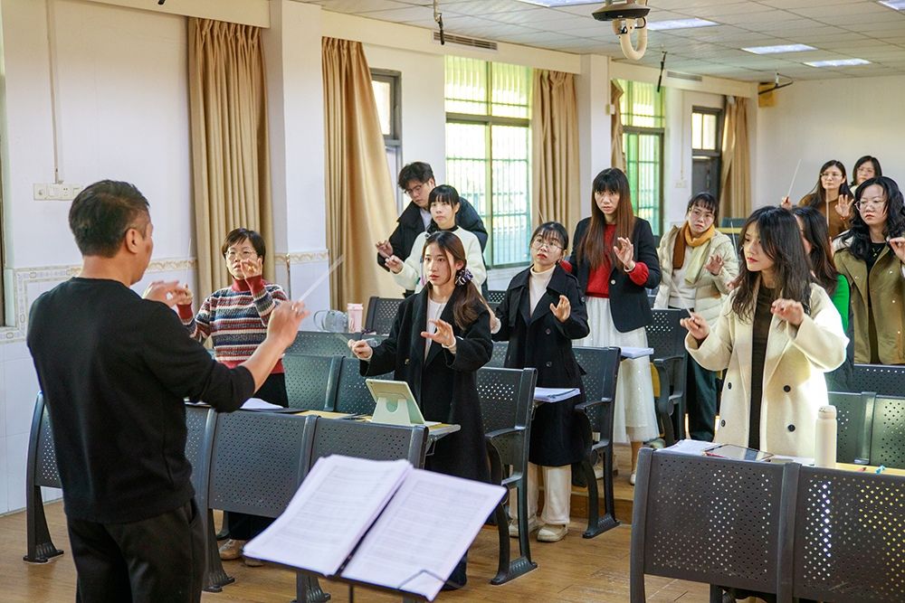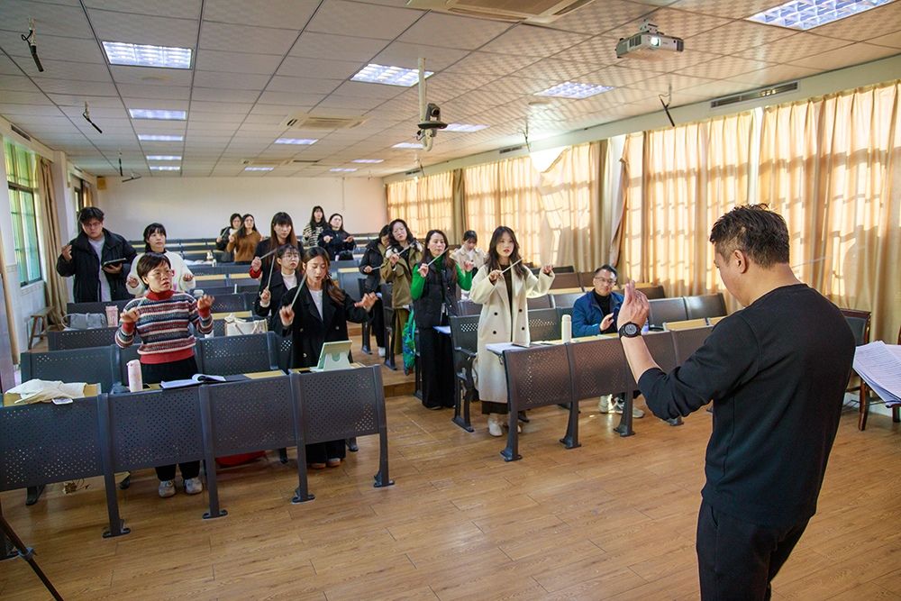 回望整个学期,汕头大学艺术教育中心林伟杰老师以满腔热忱投身美育浸润工作,12次奔赴潮南区,足迹遍布司马浦华西里学校、陈店沟湖学校等4所学校。从《乡间情事》的节奏解析到《春天的歌》的合唱编排建议,从乐器演奏的技巧打磨到音乐教学的理念分享,他的课堂始终兼具专业性与趣味性。他摒弃“重技巧轻情感”的教学误区,引导老师们从节奏细节入手,感受音乐背后的情绪流动;鼓励教师们敢于尝试、主动表现,通过渐慢、拉长、分段强化等手法,解锁音乐表现的更多可能;更结合合唱与器乐配合的实际案例,为一线音乐教学提供了切实可行的新思路。