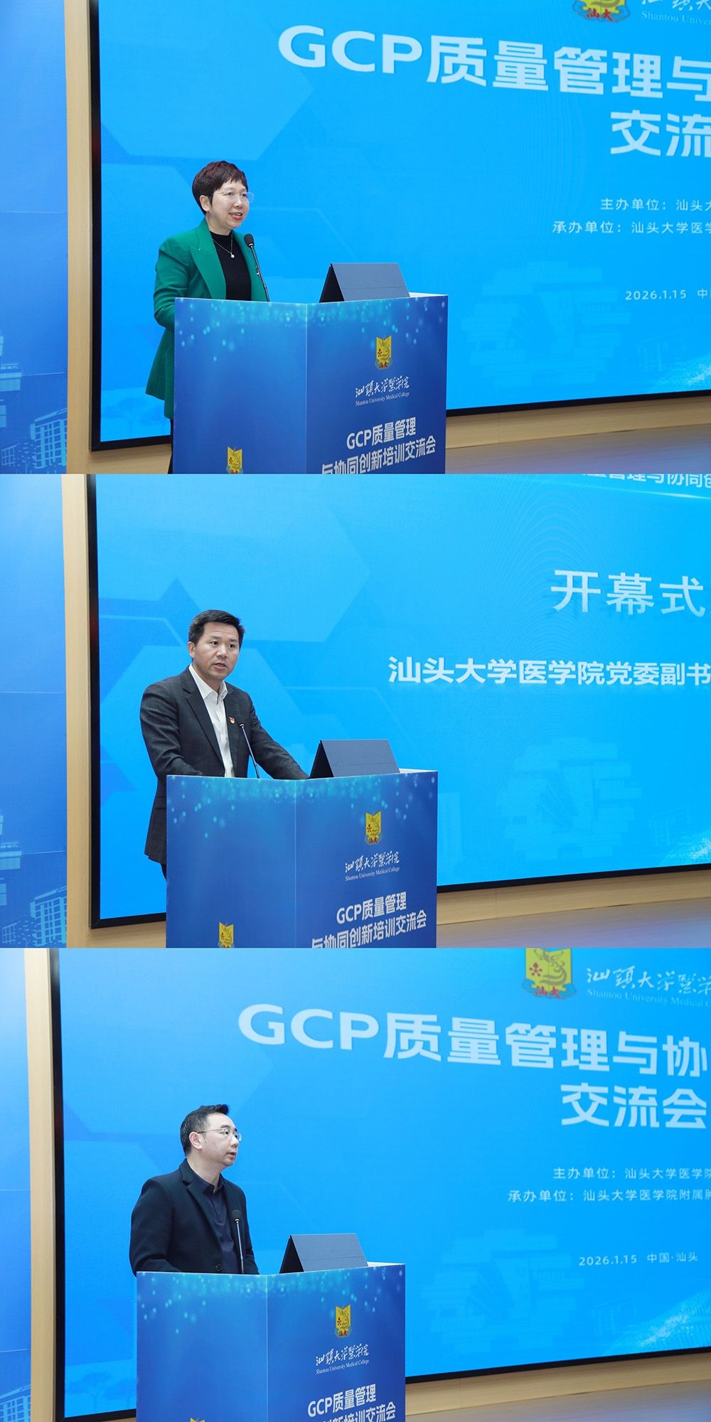 1月15日下午,汕头大学医学院GCP质量管理与协同创新培训交流会在附属肿瘤医院召开。汕头大学医学院党委副书记、院长夏欧东,汕头市卫生健康局领导出席会议并致辞。汕头大学医学院副院长曾旸主持开幕式。会上,“汕头大学医学院临床试验联盟(GCP联合体)”正式成立。