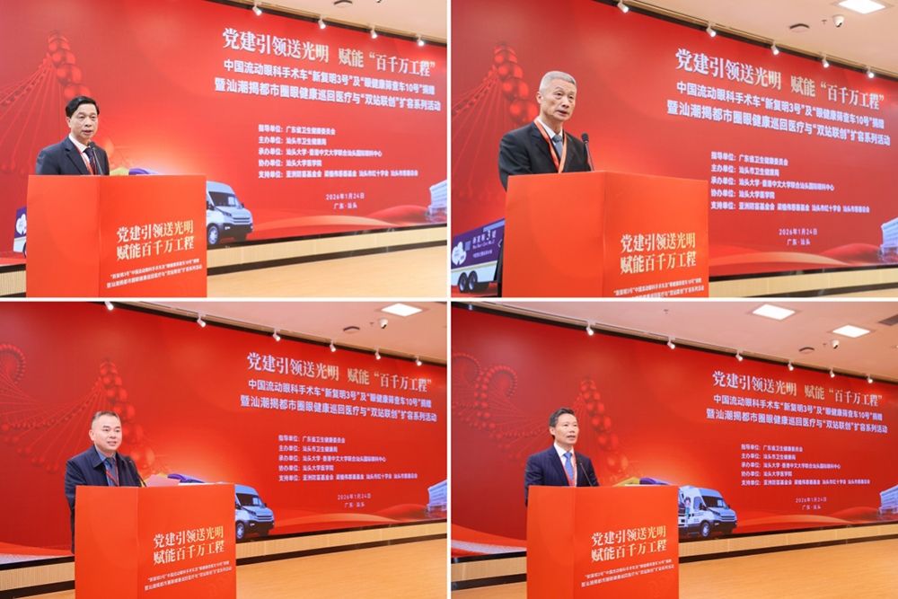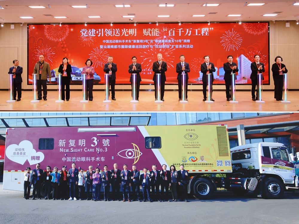 为深入贯彻落实党的二十大及历次全会关于“推动优质医疗资源扩容下沉和区域均衡布局”的重要精神,扎实推进广东省“百县千镇万村高质量发展工程”与《汕潮揭都市圈发展规划》,1月24日,党建引领送光明,赋能“百千万工程”——“新复明3号”中国流动眼科手术车及“眼健康筛查车10号”捐赠暨汕潮揭都市圈眼健康巡回医疗与“双站联创”扩容系列活动在汕头市举行。