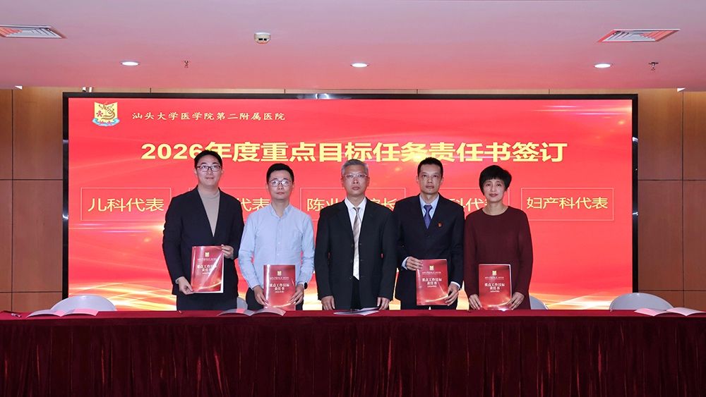 目标既定,责任必担。在全体与会人员的共同见证下,内科、外科、妇科、儿科等临床科室主任作为代表,依次上台与陈业晞签订《2026年度目标责任书》。这份责任书,既是责任的传递,也是承诺的彰显,标志着医院2026年度目标任务已全面分解、责任到人,切实凝聚起“人人扛责、同向发力”的工作合力,为年度各项工作落地见效筑牢坚实基础。