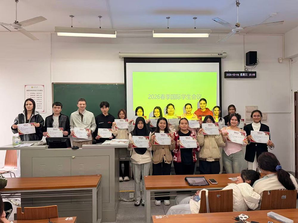 3月4日,国际学生寒假成果表彰大会在桑浦山校区举行。大会集中展示绘画、书法、视频等优秀成果,为活动中表现突出的个人与团体颁发荣誉证书及奖品,总结活动成效,为本次寒假系列活动画上圆满句号。
