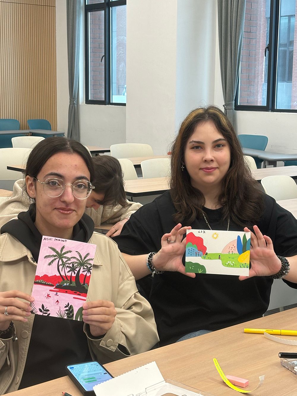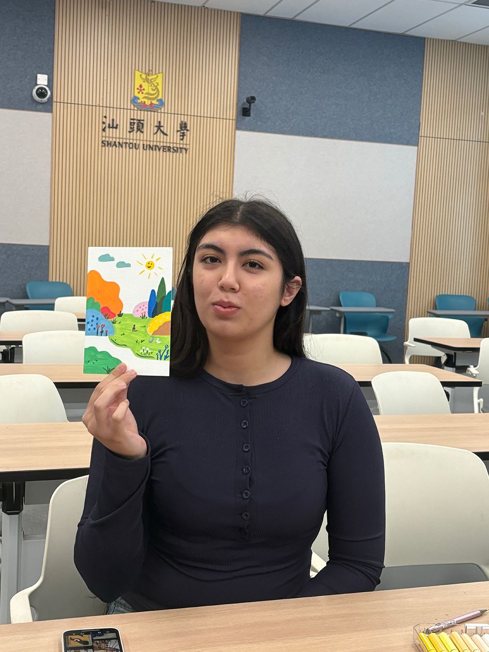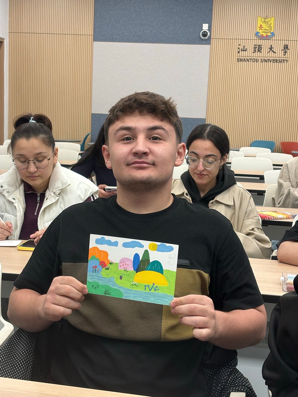 创意绘画工坊中,同学们以“我的校园”为主题创作,用画笔勾勒校园景致、抒发对汕大的热爱,作品色彩鲜明、创意十足。