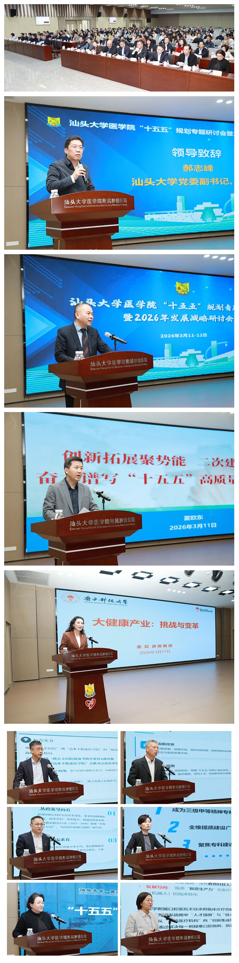 3月11日至12日,汕头大学医学院召开“十五五”规划专题研讨会暨2026年发展战略研讨会,深入贯彻落实教育强国建设相关部署,全面对接学校发展战略,科学谋划“十五五”发展目标与实施路径。会议旨在汇聚校内外智慧力量,统一思想、凝聚共识、明晰方向,为医学院高质量发展迈上新台阶奠定坚实基础。汕头大学党委副书记、校长郝志峰出席会议并致辞,南方科技大学党委书记姜虹受邀作专题讲座。
