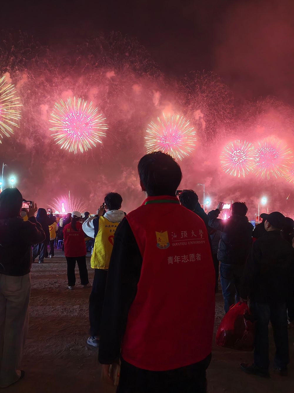 焰火的璀璨转瞬即逝,志愿的温暖却久久留存。万人仰望的是夜空中的流光溢彩,而汕大志愿者们仰望的,是一城烟火的平安祥和,更是志愿精神在青春里的闪耀模样。从午后艳阳到夜幕低垂,他们以坚守诠释责任,以微笑传递温暖,让“奉献、友爱、互助、进步”的志愿精神在鮀城新春的风里生根发芽。这抹属于汕大青年的志愿亮色,不仅为一场盛会筑牢了保障,更化作城市里流动的温暖,让青春的担当与奉献,成为比焰火更动人的风景,也让志愿的火种在一次次坚守中,持续传递、生生不息。
