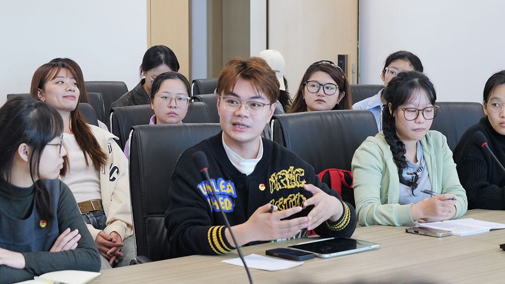党员发展对象蔡铭誉结合自身感悟分享学习心得,聚焦两会热词畅谈学习体会。“政府工作报告提到构建就业友好型发展方式、制定高校毕业生等青年就业支持政策,这一部署对我们青年群体而言,无疑是提振信心的好消息。”他的发言贴合青年心声,引发在场同学强烈共鸣。