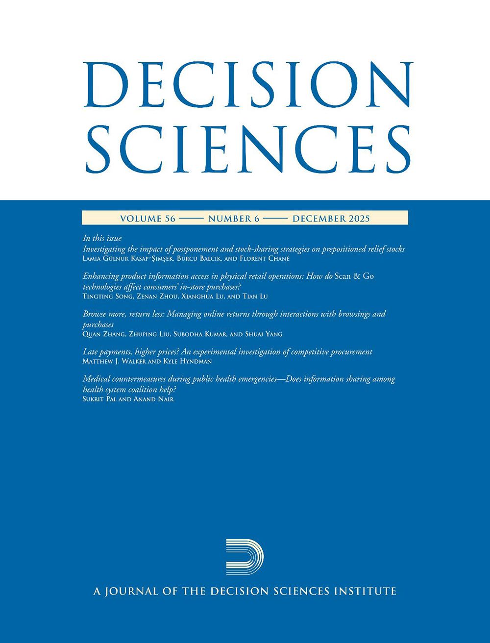 近日,汕头大学商学院李柏勋教授受邀担任国际决策科学领域旗舰期刊《Decision Sciences》编委。据悉,《Decision Sciences》是美国决策科学学会(DSI)于1970年创办的旗舰期刊,是国际公认的决策科学领域顶级期刊和管理科学与工程学科权威期刊,在运筹优化、信息系统、数据科学、组织决策、商业分析等方向具有深远的学术影响力。