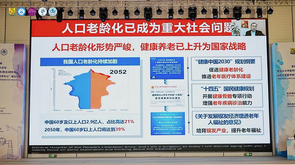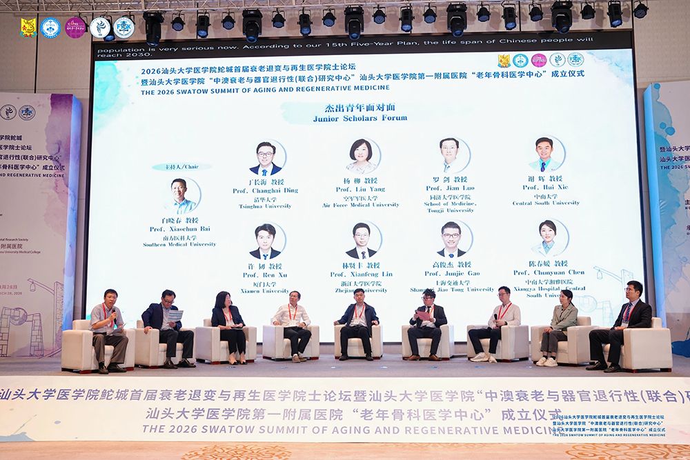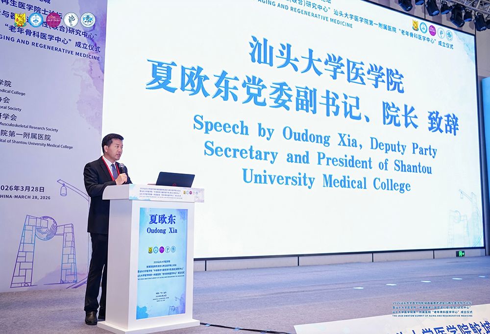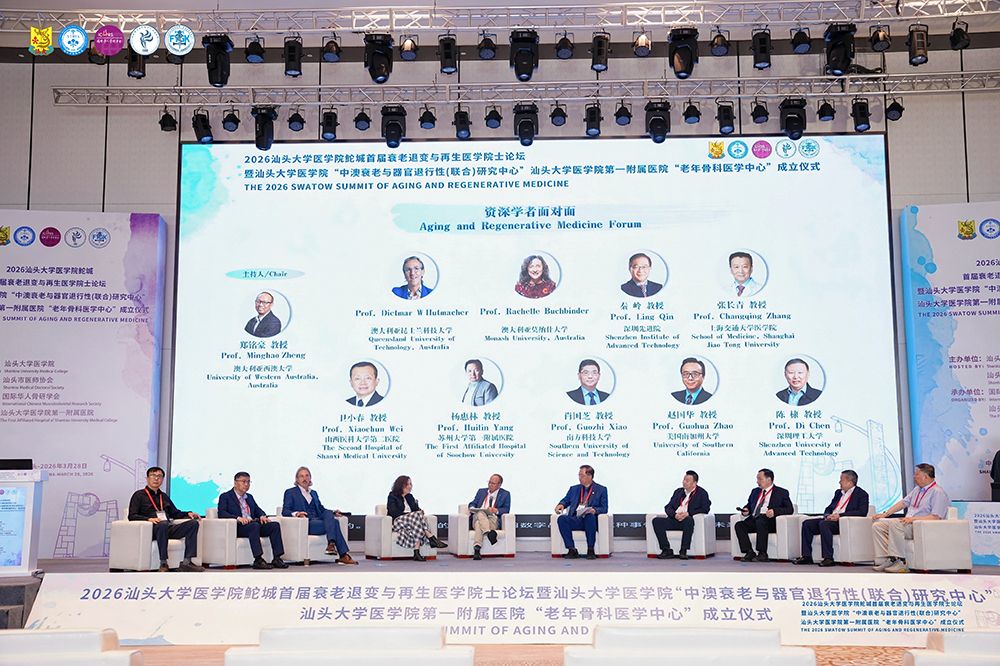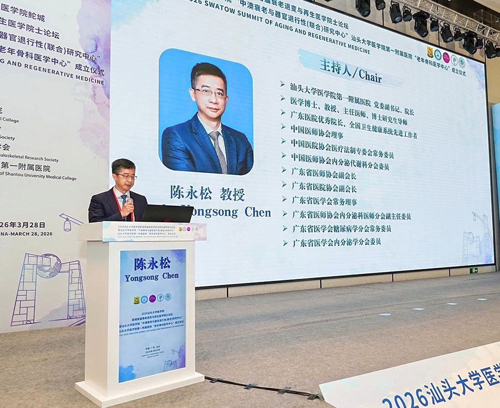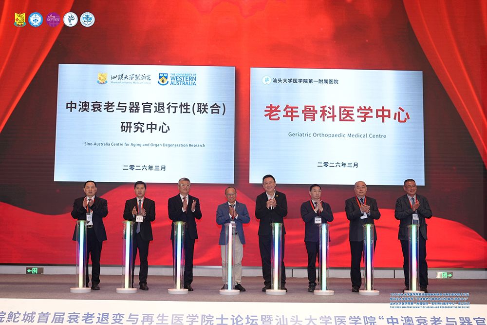 3月28日,汕头大学医学院鮀城首届“衰老退变与再生医学院士论坛”在汕头举行,海内外专家学者齐聚鮀城,共探老年健康前沿课题。会上,“中澳衰老与器官退行性(联合)研究中心”与汕头大学医学院第一附属医院(以下简称附一院)“老年骨科医学中心”正式揭牌,标志着汕头大学医学院在应对人口老龄化、推动衰老与再生医学研究及临床转化上迈向新阶段,也代表着附一院在老年骨科领域谋篇布局再上新台阶。