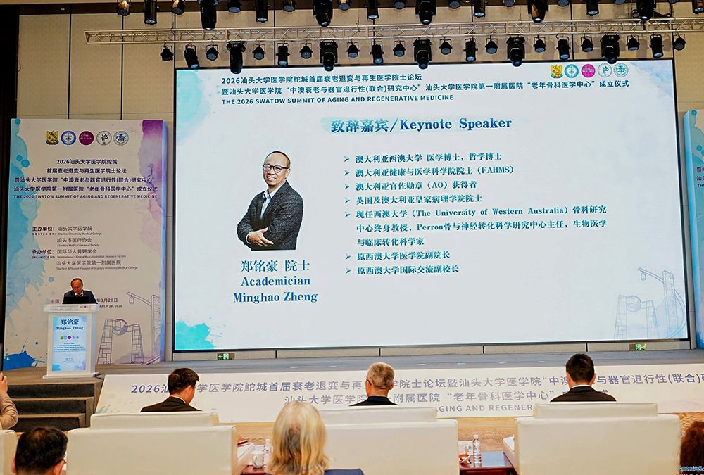 本次论坛的举办,不仅展示了我国在衰老与再生医学领域的科研实力,也为海内外学者提供了一个高水平、深层次的交流平台。汕头大学医学院及附一院将以此次论坛为契机持续深耕衰老与再生医学领域,依托研究中心与临床基地,为提升老年人健康寿命、应对国家老龄化挑战贡献“汕大智慧”与“中国方案”。中澳衰老与器官退行性(联合)研究中心将以郑铭豪等海外顶尖学者为桥梁,推动汕头大学与西澳大利亚大学等国际伙伴紧密携手,围绕衰老机制、组织再生等核心问题开展联合攻关,加速科研成果向可验证、可转化的路径迈进,聚焦前沿,共绘衰老干预新蓝图。