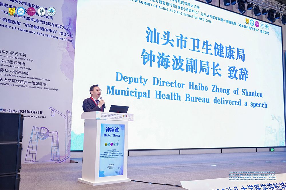钟海波致辞时表示,两个中心的成立标志着汕头市在贯彻落实“十五五”规划和健康高质量发展规划、积极应对人口老龄化国家战略、推动高水平医学学科发展方面迈出了新的坚实步伐,也意味着我市在深化医教研协同、推进国际合作、提升区域医疗创新能力方面取得了新的重要进展。市卫生健康局将持续支持平台建设、人才培养、科技创新和国际合作,推动更多科研成果转化落地,更好服务粤东群众健康。